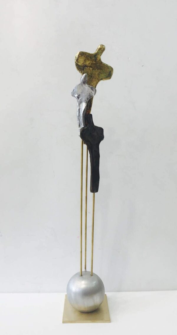 BRONZE figure SCULPTURE, unique mobile metal sculpture, iron, cast bronze
