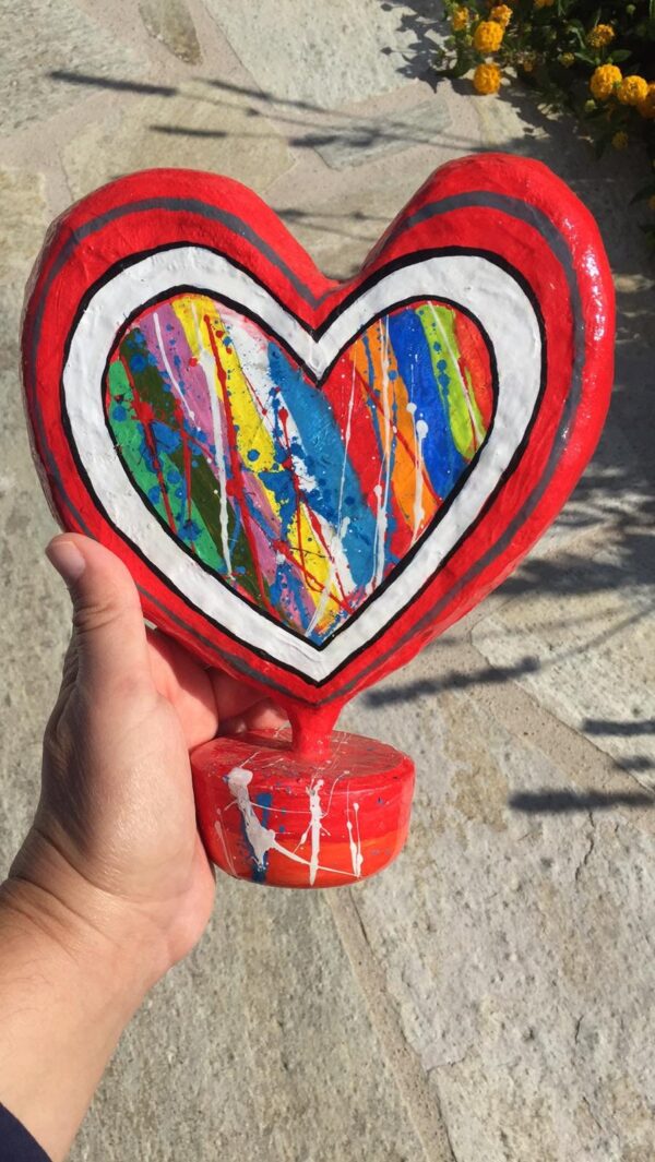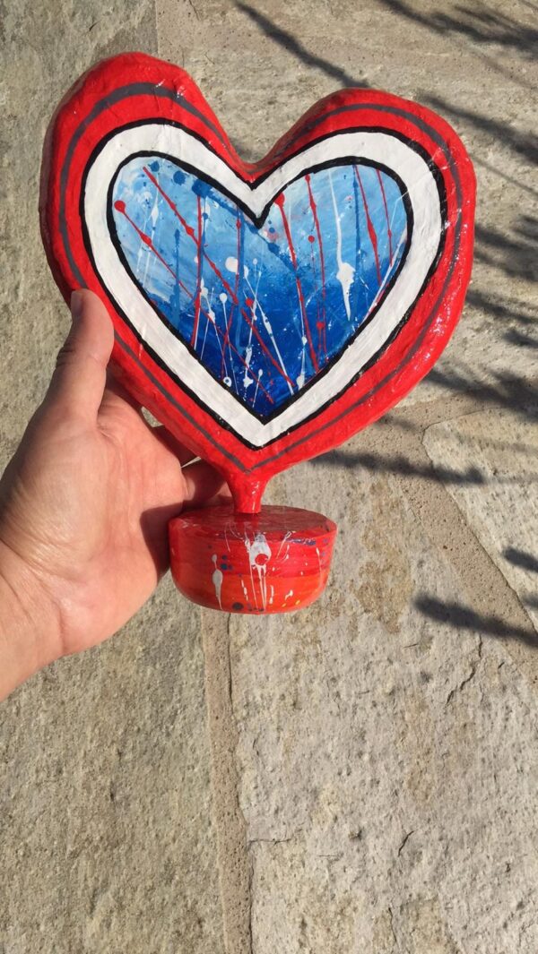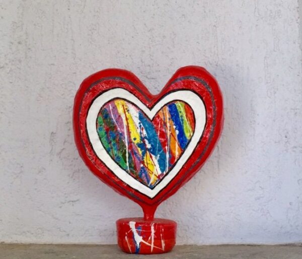Heart sculpture, pop art,table decor,home decor,mixed media, papie mache,acrylic colors, heart