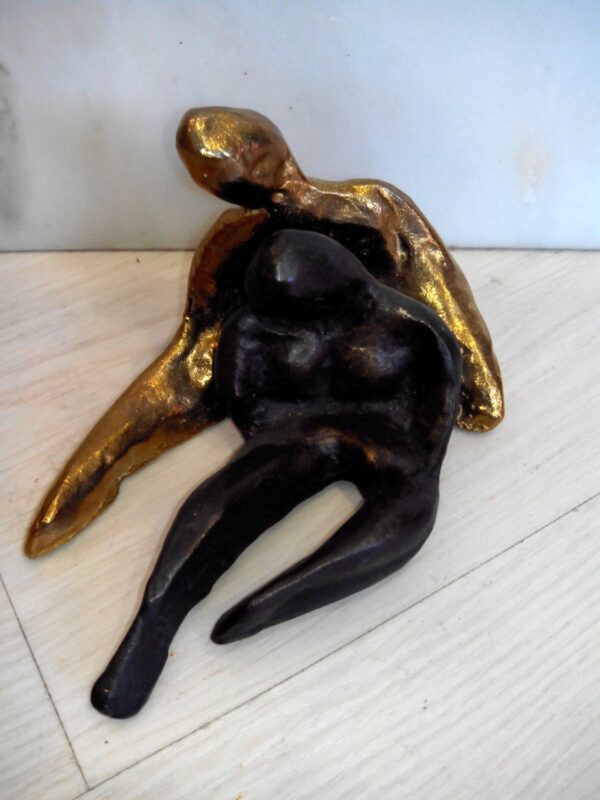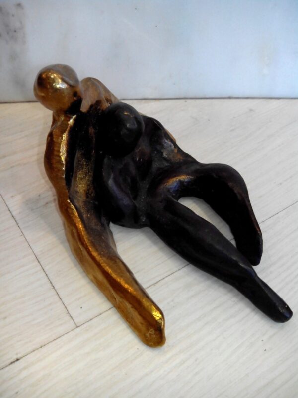 Sculpture of a couple in love. Casted bronze sculpture. Oxidized.