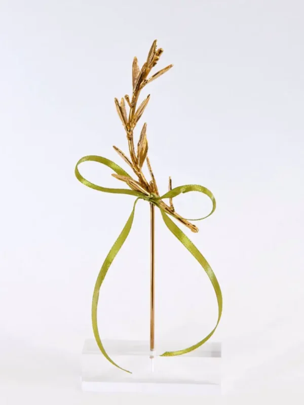 Olive twig on a pespex stand made in raw bronze. Made to order